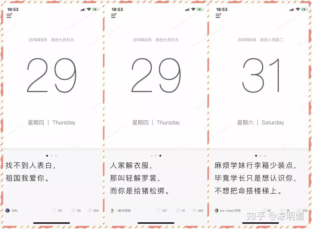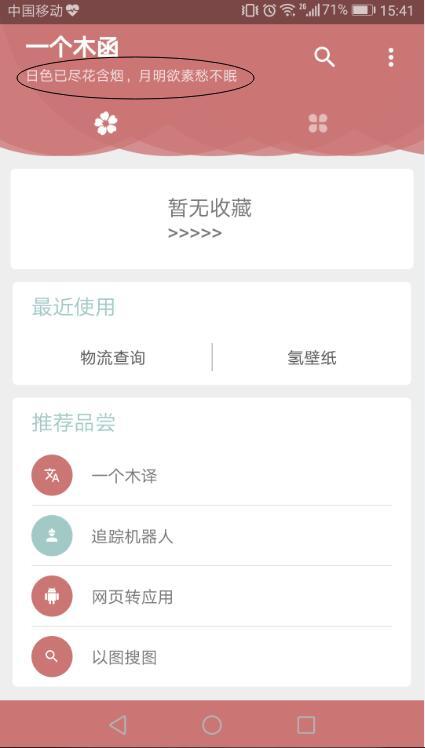 还有它左上角会有一句很美的诗句,且每次打开APP,诗句都是不一样的,如此有格调,真的超赞。我能说有时候我打开它,就为了看看这句诗嘛。