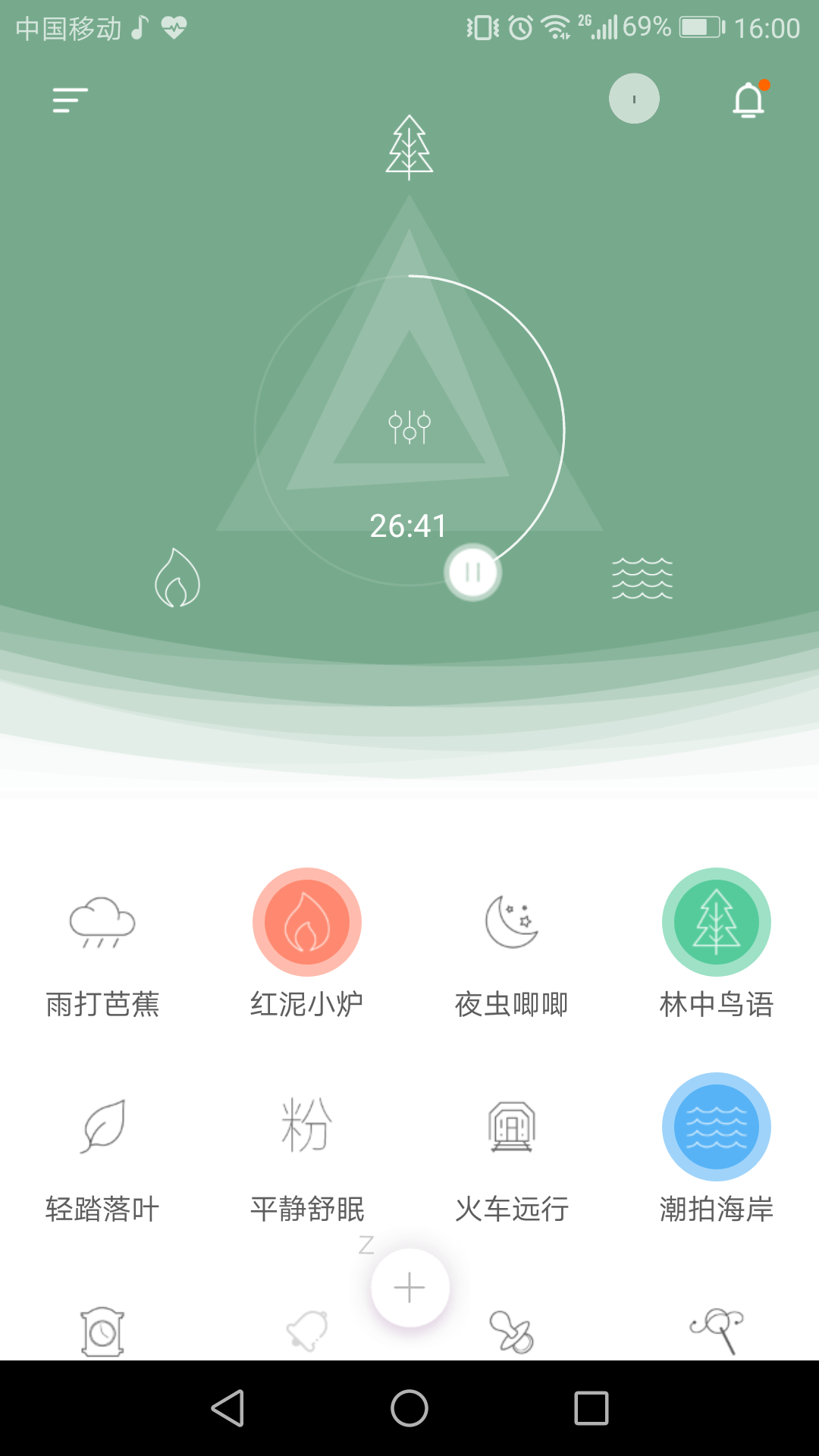 一次最多可以选择三个声音叠加,时间是半个小时,当然了,一般打开它,没一会儿我就睡着了。