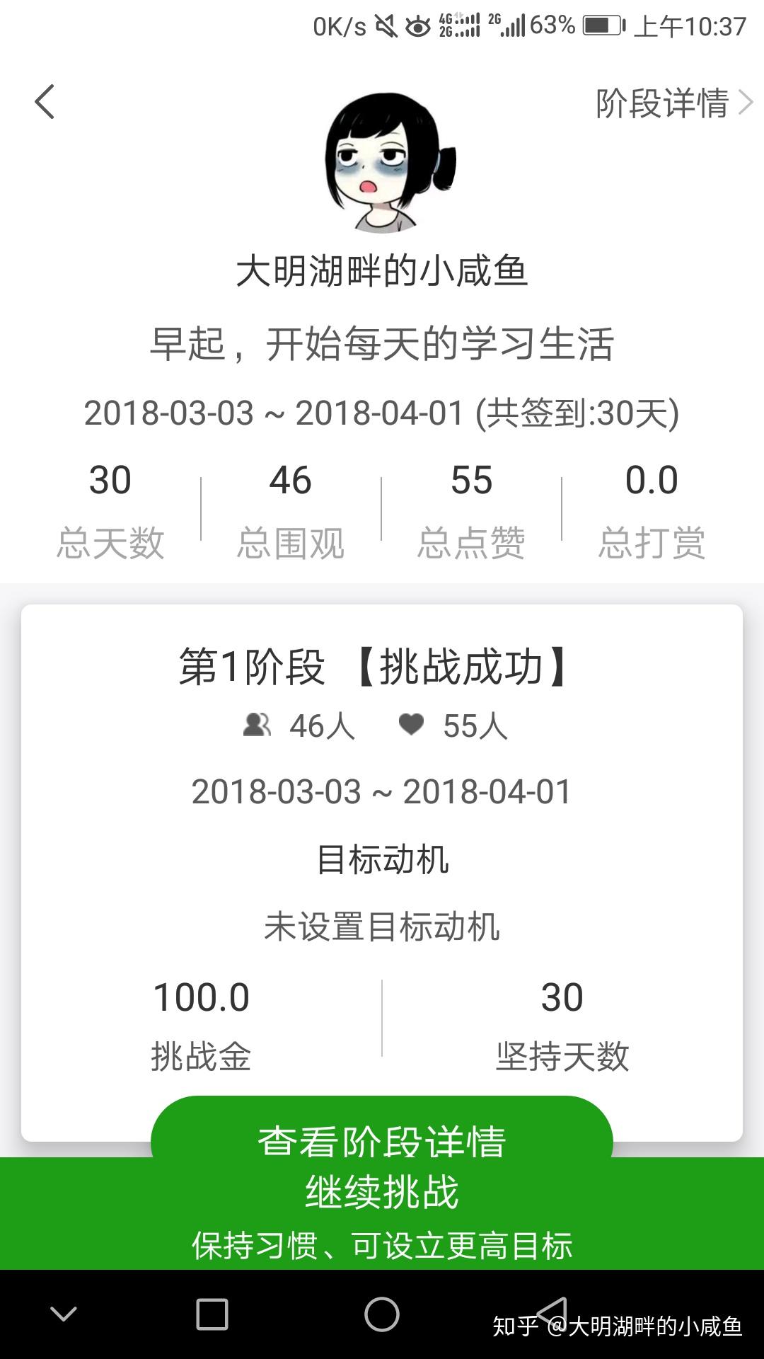 我之前为了完成某个考试,定过早起学习的目标,冲了100。